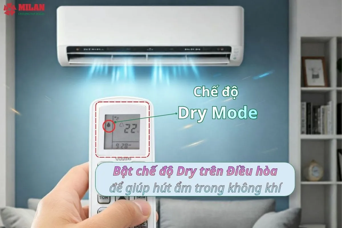 - Bật điều hòa chế độ Dry: Thao tác bắt buộc trong danh sách trời nồm nên làm gì để rút bớt hơi nước.
