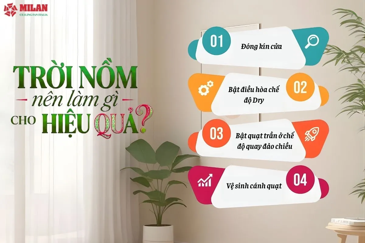 Hy vọng bài viết đã giải tỏa được nỗi lo trời nồm nên làm gì của bạn. Việc sở hữu một chiếc quạt trần có tính năng đảo chiều Milan không chỉ giải quyết vấn đề làm mát, mà còn là giải pháp bảo vệ không gian sống suốt bốn mùa. Hãy liên hệ ngay với Milan để được tư vấn mẫu quạt giúp bạn không còn phải đau đầu vì trời nồm nên làm gì mỗi khi mùa ẩm về.